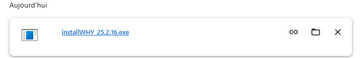 Téléchargez le fichier d’installation de WHY distant, en cliquant sur le lien transmis par WhySoft Group (Lien du type www.why.eu/version_why/installWHY_NUMERODEVERSION.exe) puis lancez le fichier exécutable.
