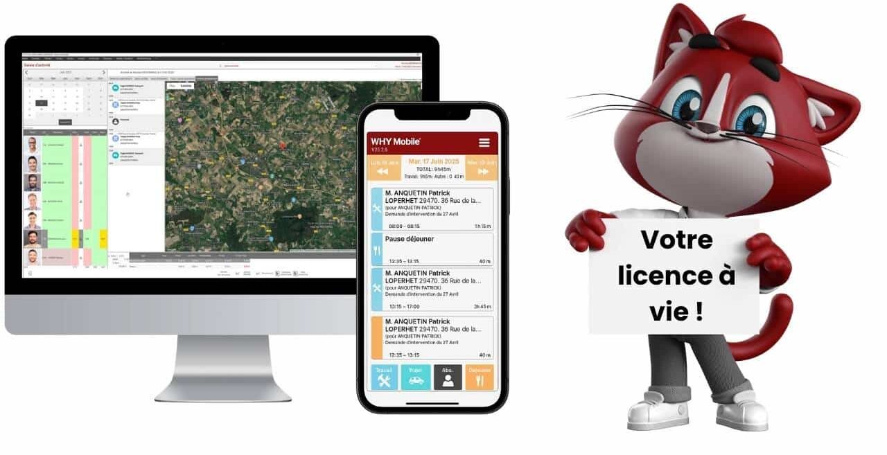 Une licence WHY Mobile® dont vous serez propriétaire et utilisateur à vie gratuitement, incluant les fonctionnalités essentielles de pointage et de suivi.